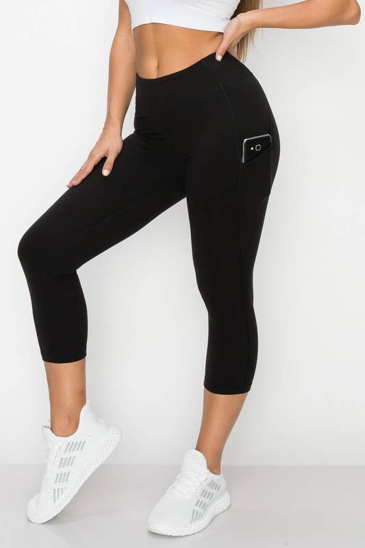 Crafted from a luxurious blend of polyester and spandex, these high-waisted capri yoga pants provide superior comfort and mobility. The secure pockets on both sides allow you to bring all the essentials you need with you while the fabric retains its shape and color, perfect for a chic and stylish look.