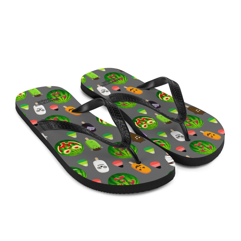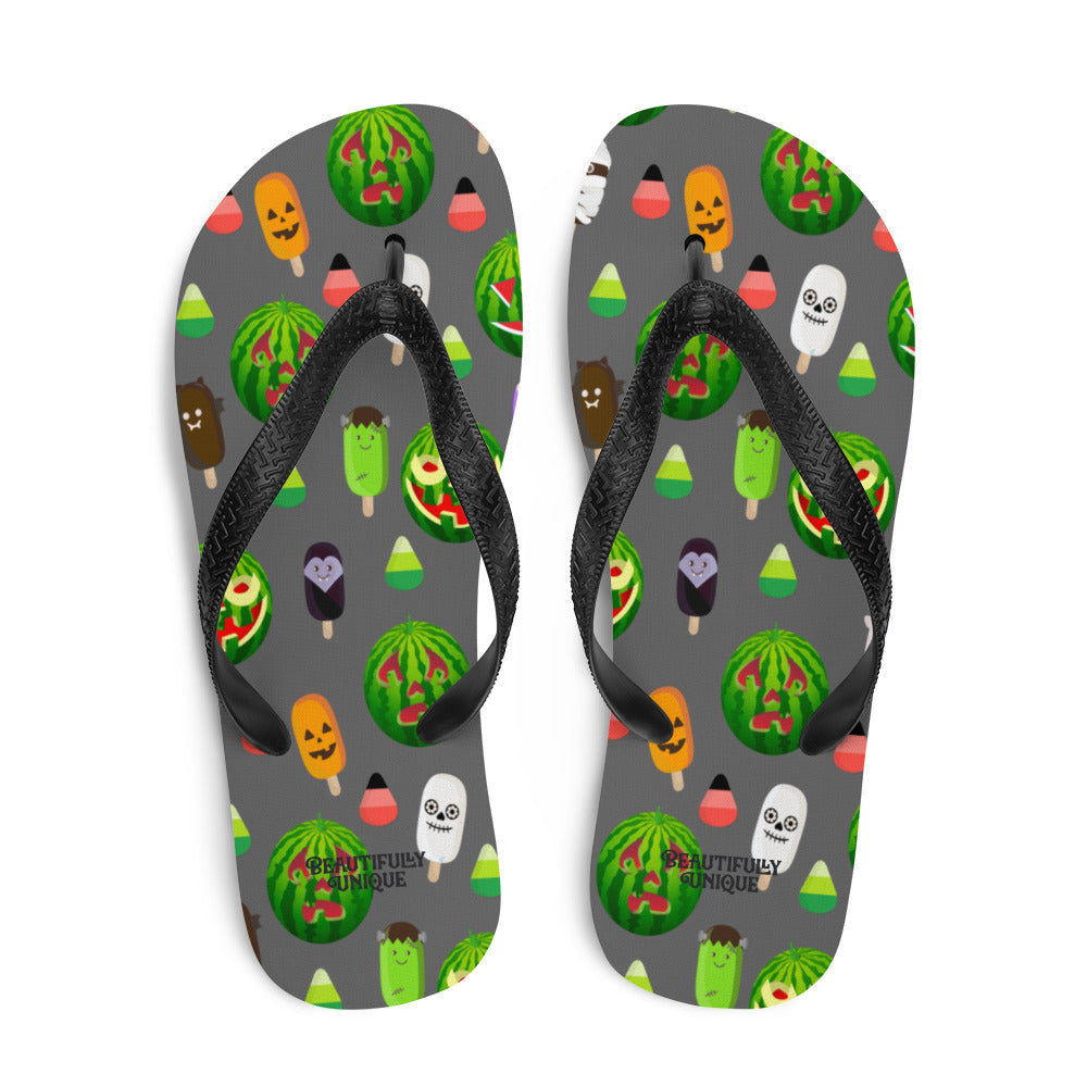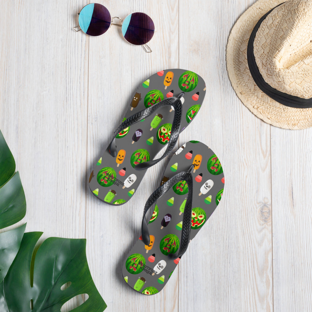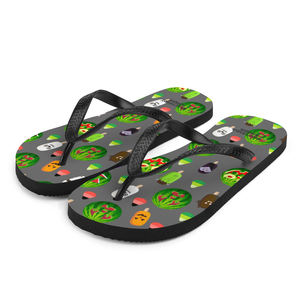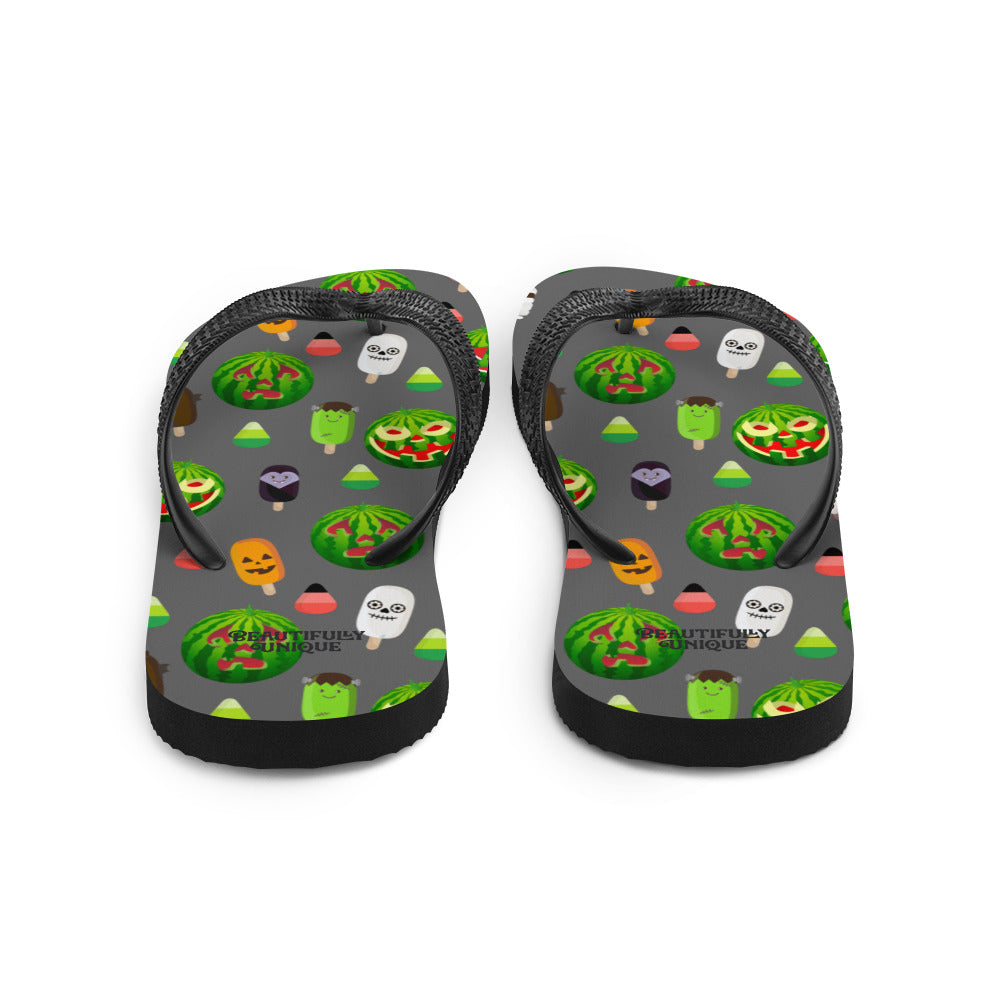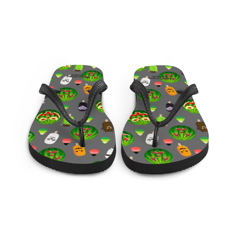Take these shoes along on any fun-filled adventures you may have with our vibrant, custom-designed flip-flops! Featuring a durable rubber sole and cushioned fabric lining, these colorful flip-flops ensure comfort and support.