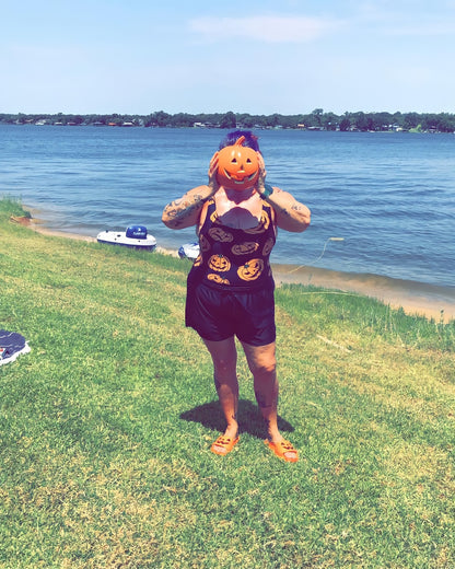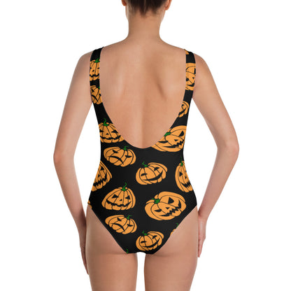 Women's Jack-O-Lanterns Halloween Orange and Black One-Piece Swimsuit