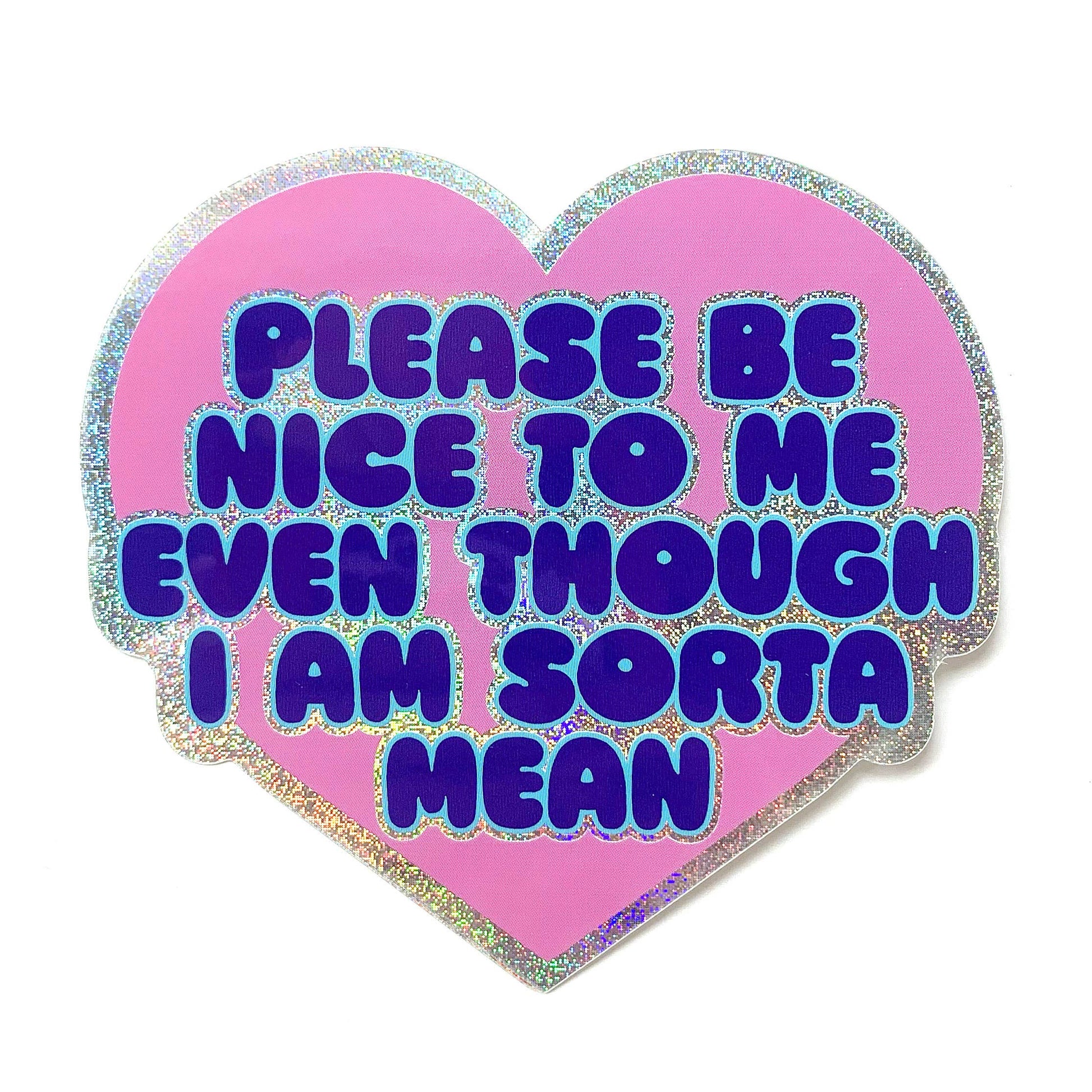 "Please Be Nice To Me Even Though I Am Mean" Glitter Sticker (Krystan Saint Cat)