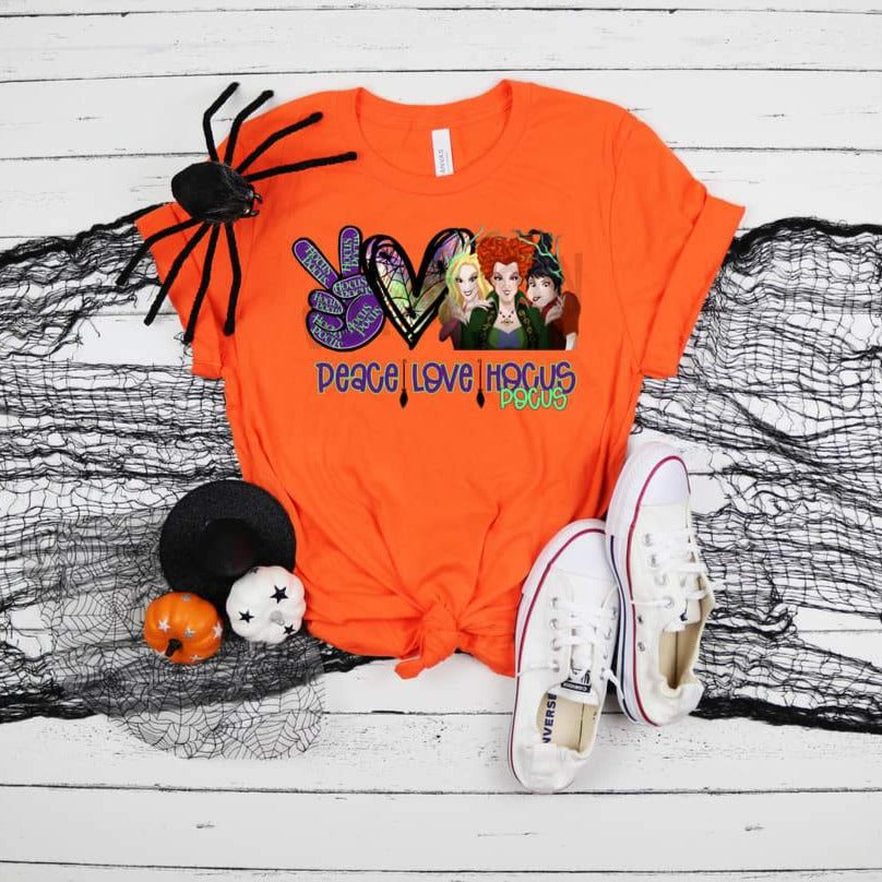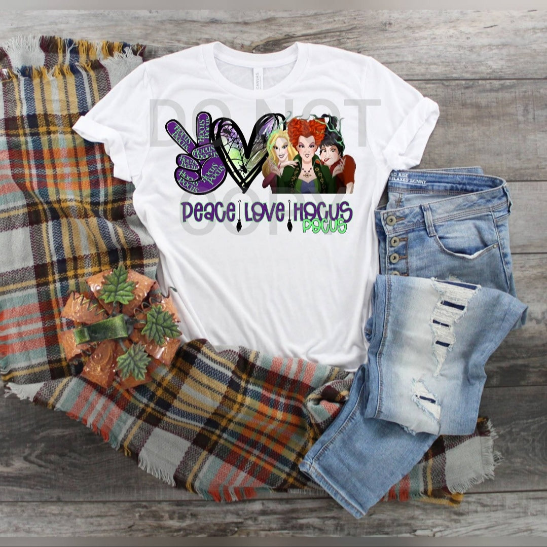 This super comfy shirt features a full-color "Peace Love Hocus Pocus" transfer.