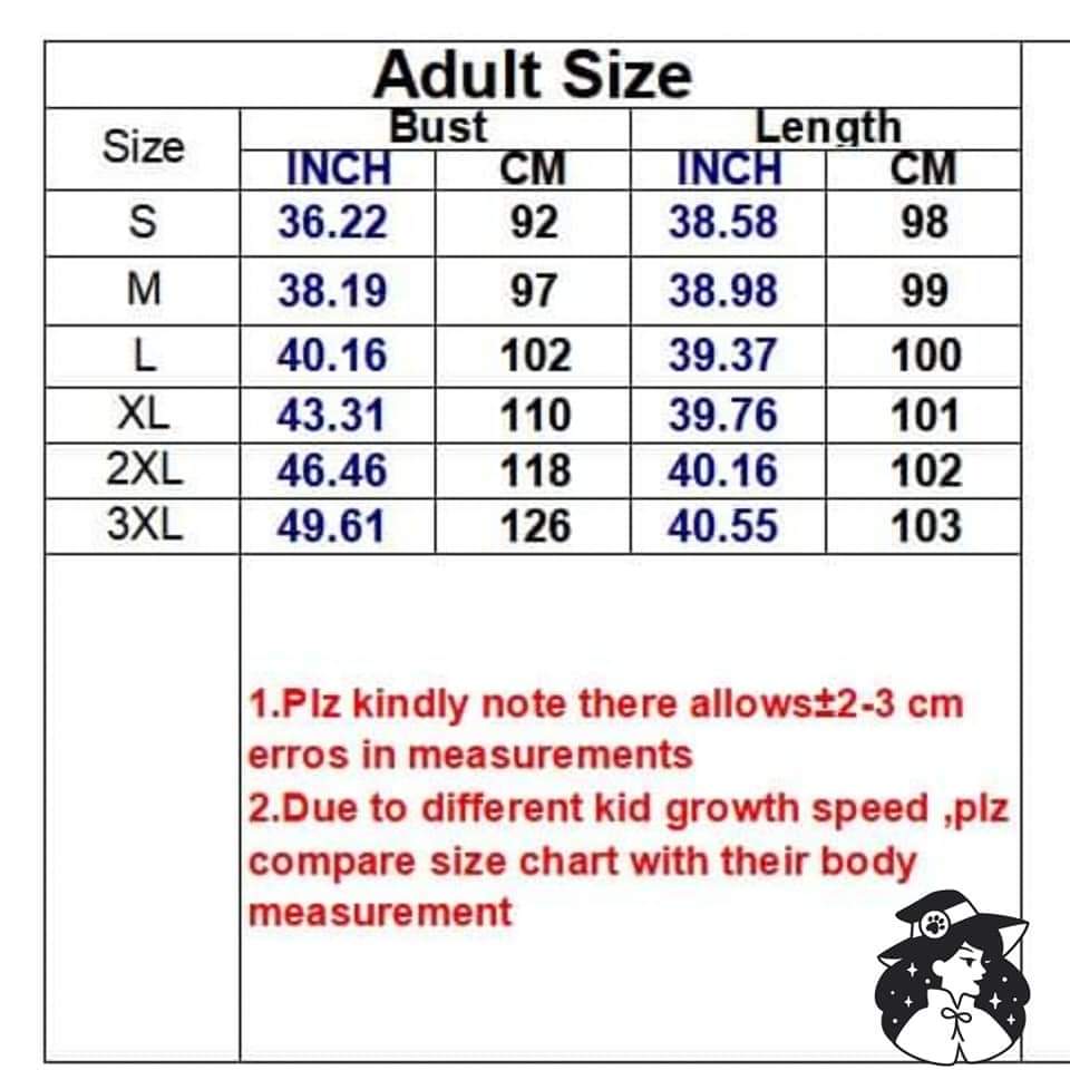 SIZES: S-3XL (please see attached size chart).