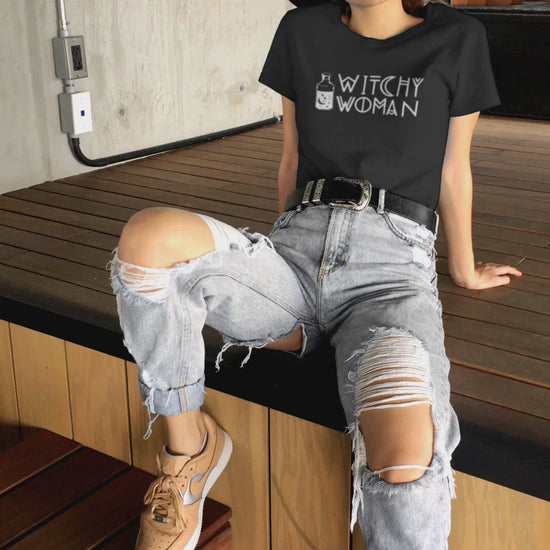 Part witch, part fashion icon. Make a statement with this unisex "Witchy Woman" tee. Made from soft, comfortable cotton with a relaxed fit, it's available in both black and purple to match whatever style you're casting. #WitchyLife!